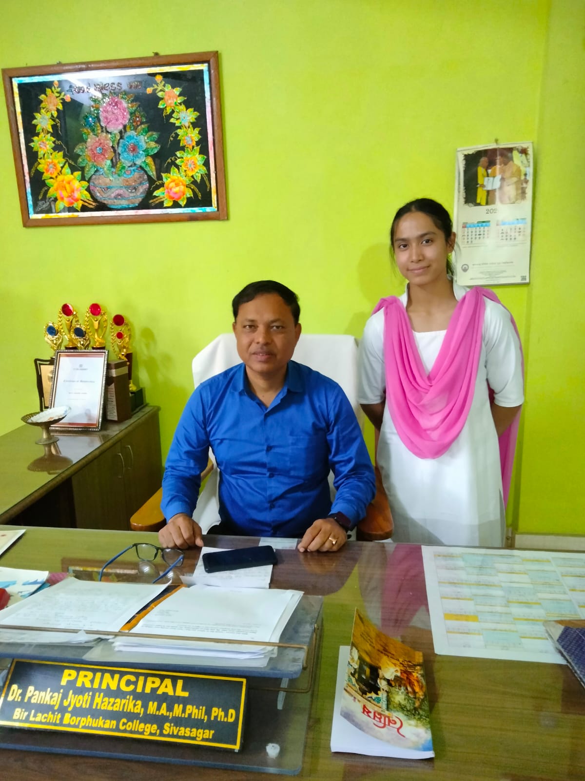 International Weight Lifting player, asset of our college Ai Seng Pha Gogoi with Principal Dr Pankaj Jyoti Hazaika